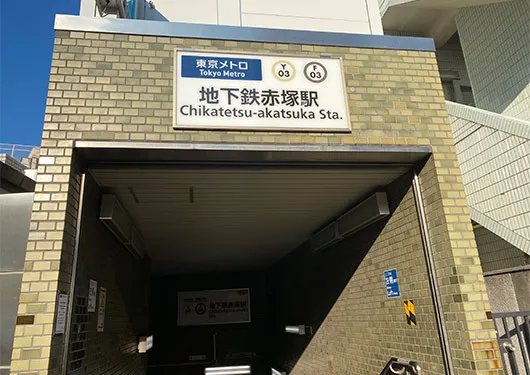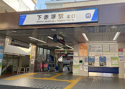 東武東上線下赤塚駅から歩いて約1分、東京メトロ地下鉄赤塚駅からは歩いて5分ほどの場所にございます。
